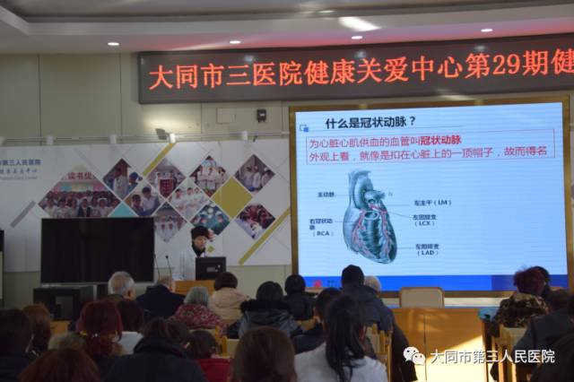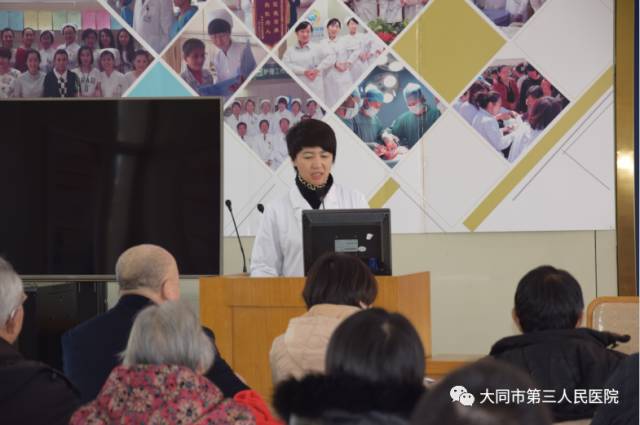 2017年1月11日下午,大同市三医院健康关爱中心成功举办第29期健康讲座。这是今年首次讲座,由CCU主任张萍主讲,所以有很多新老听众前来参加,有听众反映:“两年呀,你们每个月都坚持不懈的举办讲座,专家也是忙里抽空为我们认真的讲解,真是感谢你们,不仅充实了我们的生活还丰富了我们的健康知识”。讲座到场听众136人,发放健康手册330份。